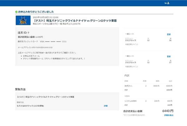 試合日の1週間前にeチケットメールをお送りいたします。eチケットはメールにPDFファイル添付で送られます。